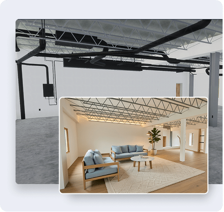 With the GeoVision desktop app, you can generate photorealistic renders while preserving your original textures and design details. Another possibility is that you can keep the building’s structure and layout intact while exploring new interior decoration and furnishing styles.